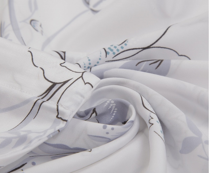Необыкновенно красивые цветы создают ощущение прогулки по цветущему саду. При создании комплекта использовалась техника акварельной живописи, поэтому орнамент приобрел мягкий, немного размытый контур. Постельное белье изготовлено из эвкалиптового волокна – долговечного и практичного материала, сочетающего лучшие свойства льна и хлопка. Постельное белье «Сильвер Шайн» приятно на ощупь. Эвкалиптовое волокно хорошо вентилируется, это гипоаллергенная, мягкая ткань, которая подходит людям с чувствительной кожей, практичный и довольно простой в уходе материал.